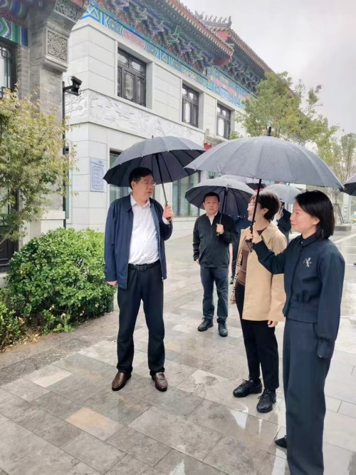 在城隍庙项目现场,王玉志实地参观了项目现场,认真听取了项目情况介绍,对项目独具匠心的古建筑设计细节以及高质量的开发建设水平给予了高度评价和充分认可。