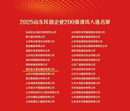 会上,太阳成集团tyc234cc建设集团凭借稳健的发展、突出的行业贡献及良好的社会口碑,不仅入选2025潍坊市50强企业名单,还连续荣获2025山东民营企业200强等多项省级荣誉。同时集团所属泰和置业有限公司还获得2025山东民营企业服务业100强等省级荣誉,充分彰显了集团作为潍坊建筑业领军企业的实力、地位和作用。