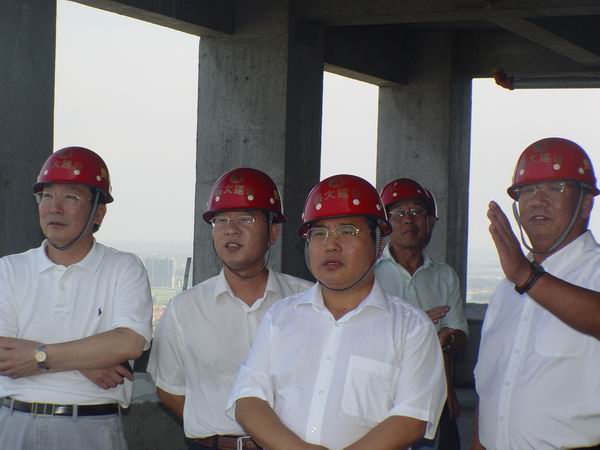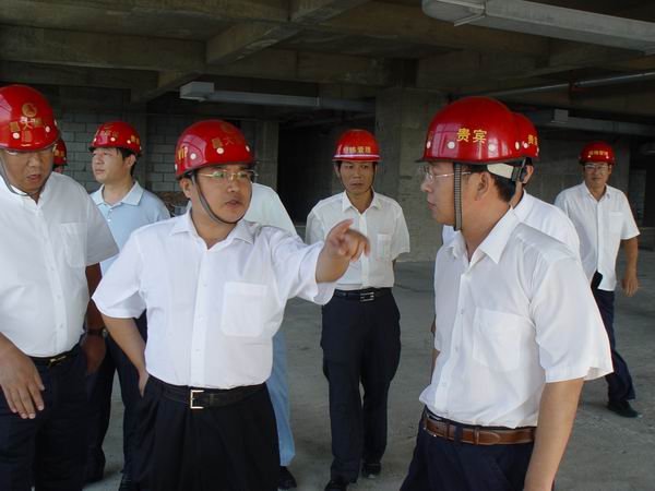2008年8月2日下午,市委书记张新起视察建设中的阳光大厦工程。集团公司董事长徐鹏强陪同视察。