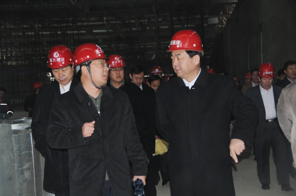 许立全书记首先在会展中心西广场施工现场驻足,查看了工程形象进度和广场施工情况。随后他从展览区东侧安全通道登上16米高二层展览大厅施工现场查看了工程施工情况。期间,徐鹏强董事长向许立全书记汇报了工程建设的有关情况,许立全书记对集团公司高效的施工组织,优质的工程质量监管表示了充分的肯定。
