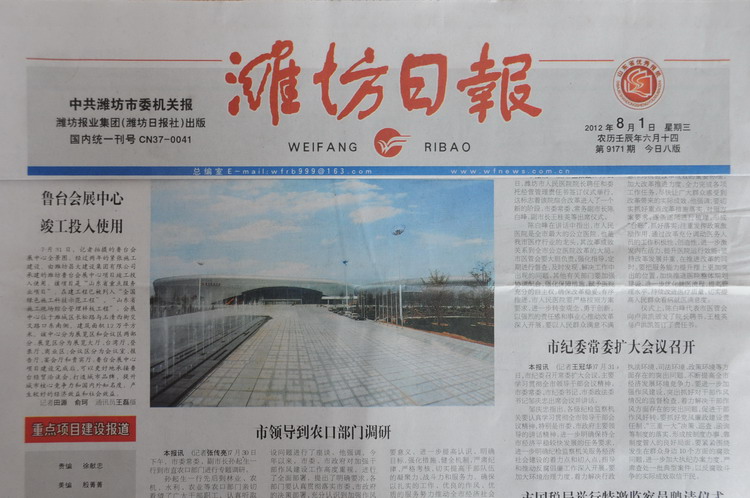 7月31日,经过两年的紧张施工建设,由太阳成集团tyc234cc(中国)有限公司 承建的潍坊鲁台会展中心项目竣工投入使用。该项目是“山东省重点服务业项目”,在建工程已被列入“全国绿色施工科技示范工程”、“山东省施工现场综合管理样板工程”。会展中心位于潍城区长松路与玉清街交叉路口东南侧,建筑面积12万平方米,该中心分为展览区和会议区两部分。 展览区分为展览大厅、台湾厅、登录厅、商业区;会议区分为会议室、报告厅、宴会厅和贵宾厅。鲁台会展中心项目建设完成后,可以更好的承接鲁台经贸洽谈会,打造城市品牌、提升城市核心竞争力和国内外知名度,产生较好的经济效益和社会效益。
