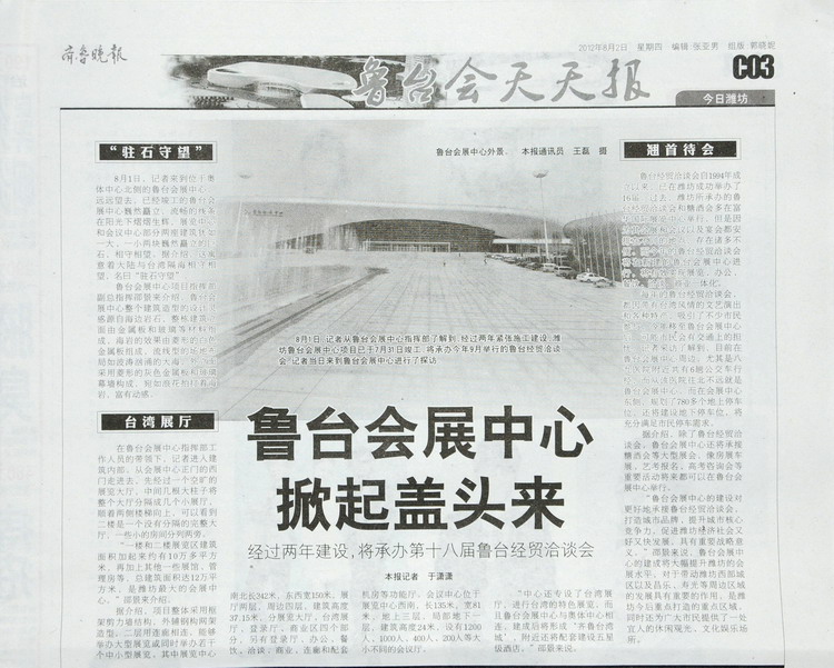 《鲁台会展中心掀起盖头来》——齐鲁晚报2012年8月2日C03版