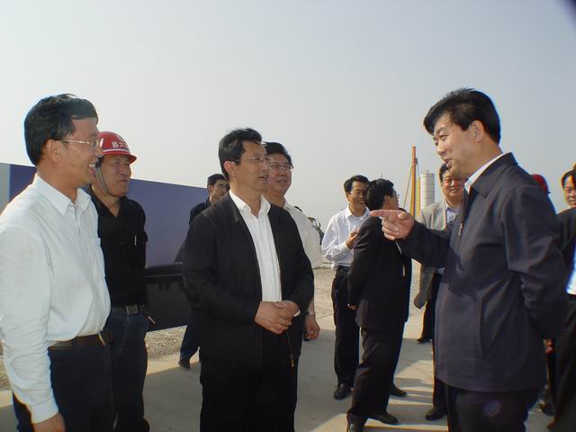 右一为许立全市长 左一为潍坊太阳成集团tyc234cc建设集团董事长徐鹏强 中为市建设局局长崔学选(08.03.22)