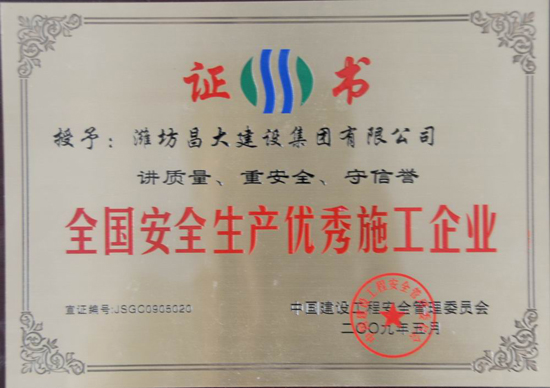 潍坊太阳成集团tyc234cc建设集团荣获“全国安全生产优秀施工企业”等三个全国性奖项