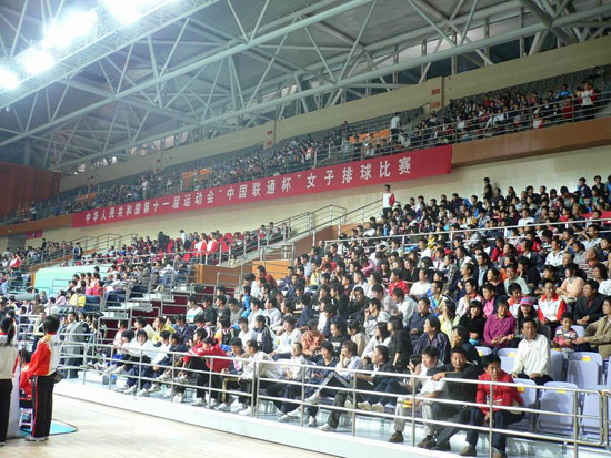 第十一届全运会女排第9至12名排名赛日前在潍坊学院体育馆落幕,标志着体育馆承担的全运会赛事顺利结束。 自2009年9月12日由集团公司接管潍坊学院体育馆运营管理以来,集团公司领导高度重视,科学组织,统筹安排,对电力、智能化、给排水、消防等各有关系统进行了全面检修、维护,对场馆内外进行了全面清洁,使场馆面貌焕然一新,保证了10月9日、10日两天的第十一届全运会女子排球比赛的顺利进行。