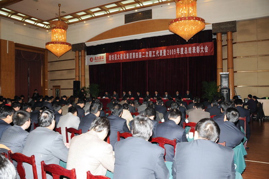 集团公司第四届二次职工代表大会暨2009年度总结     3月6日上午,集团公司第四届二次职工代表大会暨2009年度总结表彰大会在潍坊大酒店隆重召开。大会共进行了六项日程。总经理朱九洲向大会所作的工作报告,从七个方面回顾总结了去年企业所取得的巨大成绩,充分肯定了广大员工的敬业精神和工作积极性,指出了管理工作的诸多薄弱环节;报告在分析了今后所面临的形势后,围绕2010年的工作任务目标,提出了七个方面的具体措施,进一步统一全员在新形势下企业的发展思路。