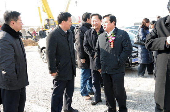 上午10时58分,在潍坊市政府副市长刘伟的主持下,开工仪式正式开始,潍坊市市政局局长孙万奎汇报工程情况。最后,当潍坊市委副书记、市长许立全宣布工程开工的霎时,鞭炮齐响,彩烟映天,4台吊车将直径2.4米的水泥管缓缓吊起,展开施工作业。伴着礼炮喷薄的彩带,喧天的锣鼓,震天雷的冲天,和着施工机械的轰鸣声,把整个开工仪式推向了高潮。随后,市领导们兴致勃勃地来到西侧施工现场,观看了第三分公司的施工作业。