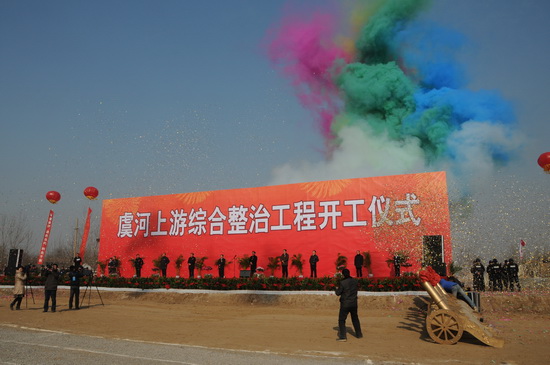 1月13日上午,虞河上游综合整治工程开工仪式在奎文与坊子两区交界的金山路虞河桥北隆重举行。潍坊市委、市人大、市政府、市政协、市法院、市检察院的市级领导,奎文、潍城、坊子、寒亭、高新等五区及市直有关部门、单位的负责人参加了开工仪式。市委书记、市人大常委会主任张新起,市委副书记、市长许立全,市政协主席赵兴涛,市委副书记崔建平,市人大常委会党组书记、第一副主任李守玉及四名市委常委,在集团公司六名礼仪小姐的引导下,依次走上主席台就位。集团公司高管层领导徐鹏强、朱九洲、滕忠斌、穆乃杰、张连悦、闫鹏,潍坊市市政局的领导和全局人员,奎文区、坊子区政府有关领导和相关单位的人员,施工、监理、设计等单位共1000余人参加了开工仪式。集团公司参加开工仪式的还有集团总部全体人员,负责施工的第三、第五、第八分公司各60名管理人员,第一、第二、第四、第六、第七、第九、安装、机械化施工分公司的各40名管理人员。