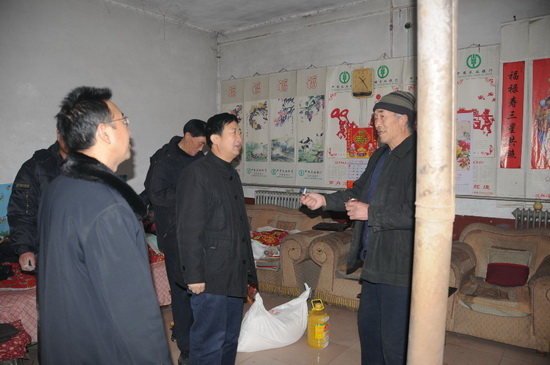 1月18日上午,集团公司监事会主席、党委副书记、纪委书记滕忠斌,副总经理兼驻临朐帮扶领导小组组长穆乃杰,在临朐城关街办有关领导及殷家河村两委领导陪同下,走访慰问帮扶村的革命家庭、长寿家庭、孤寡家庭及困难家庭等十个家庭户代表,并送去面粉和食用油,表达集团公司对帮扶村村民的新春祝福和美好祝愿。集团公司总部有关部门、第九分公司有关人员和帮扶领导小组成员参加了走访慰问活动。 ![]() 走访孤寡老人 ![]() 走访革命家属家庭 ![]() 走访96岁寿星户