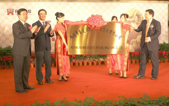 1月22日上午,由集团公司控股设立的潍坊市奎文区民兴小额贷款有限公司,在潍坊国际金融大厦举行了隆重的开业仪式。参加开业庆典仪式的有山东省财政厅副厅长庞敦之及民生银行山东省分行行长马琳,潍坊市人民政府副市长夏芳晨及市金融办、市财政局、市银监局、市人民银行等市直单位、部门负责人,奎文区委副书记、区长李辉,副区长贾平及奎文区金融办负责人,市工商银行、中国银行、交通银行、农信联社、中信银行、招商银行、农业银行、建设银行、潍坊银行、华夏银行、民生银行、浦发银行等市银行系统负责人,驻奎文区的金融机构中国银行、工商银行、建设银行、潍坊商行、农业银行、新华路农信联社等负责人,泰华集团、博悦地产、东方钢管、中百集团等集团公司重要客户主要负责人,华和担保公司、巨鑫担保公司、水建总公司、恒泰担保公司、泰翔商贸公司、奇正商务咨询公司、博扬投资咨询公司、吾爱设计有限公司、南京龙蟠石化潍坊分公司、速比达连锁汽修总经理等重要相关客户,潍坊市建设局局长李广东及局领导班子全体、局机关各科室主要负责人、局属各单位主要负责人,集团公司董事长、民兴小额贷款公司董事长徐鹏强,民兴小额贷款公司股东单位负责人,集团公司高管层领导滕忠斌、李坤明、姜建鲁、穆乃杰、张学智、闫鹏,总经理助理张修双、谭瑞明,总部部门负责人、各基层单位(子公司)经理书记共计170余人参加了开业庆典仪式。 ![]() 市金融办主任李传顺宣读省金融办同意公司设立方案的批复 ![]() 董事长徐鹏强汇报公司筹建情况 ![]() 奎文区区委副书记、区长李辉致辞 ![]() 潍坊市副市长夏芳晨讲话 ![]() 省财政厅厅长庞敦之、民生银行省分行行长马琳、副市长夏芳晨揭牌