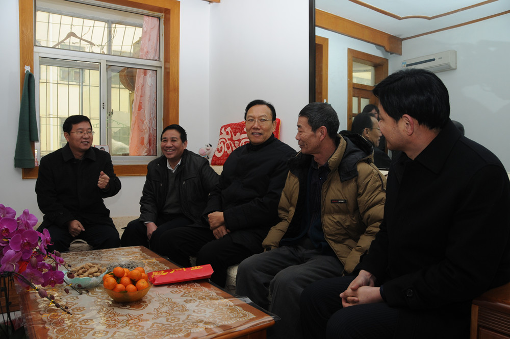 在刘洪章家里,欢声笑语。李守玉副主任亲切握着刘洪章的手询问身体、询问生活、询问家庭,代表市委市政府感谢刘洪章同志对国家、对企业所作的贡献,向他们一家表示新春的祝福。