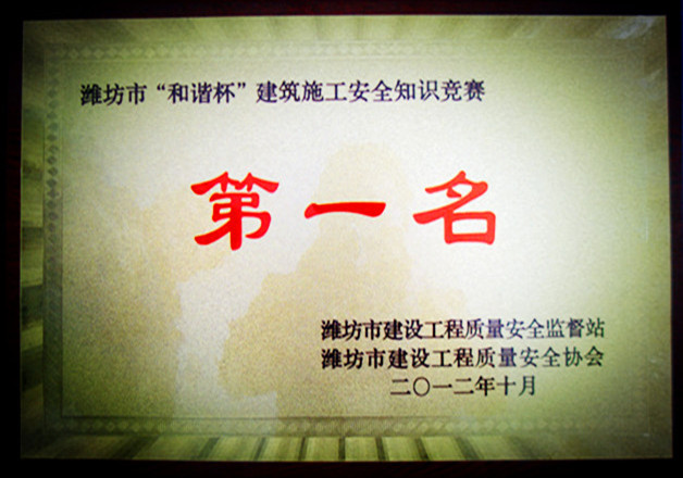2012年10月18日上午,潍坊市“和谐杯”建筑施工安全知识竞赛半决赛、决赛在潍坊市建设工程质量安全监督站五楼会议室举行,集团公司代表队获得决赛第一名。集团公司副总经理刘雁冰出席竞赛活动。