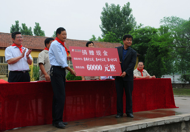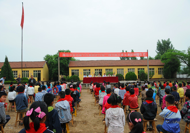 在这个活动之前,装饰分公司就有为贫困地区儿童捐助爱心的动意,春节之后,他们专门派人到集团公司第二批帮扶的临朐寺头镇大崮东村进行实地调研和走访,得知这里的春蕾小学有不少留守儿童或因离家较远、或因家中无人照料、或因天气不好道路难走等原因在学校吃不上热乎的午饭,有些学生干脆挨饿,有些学生直接就啃个干馒头凑合一顿,有个别生活条件稍好一些的,可能带上一支火腿肠,就这样已经算是奢侈的了。调研之后在征询员工意见时,大家提出了为学校捐建午餐食堂的建议,随后他们又联合了第四分公司、第八分公司一同实施献爱心之举。倡议书在5月26日发出,三个分公司的领导带头捐款,员工涌跃参与,从几百元到上千元不等,仅两天时间,三个单位员工捐款就达到了6万元。为了使员工这些爱心捐款能真正落实到位,他们针对学校的学龄前儿童专门购买并安装了滑梯、娱乐设施和儿童玩具,其余4万多则完全用于为学校建设午餐食堂之用。