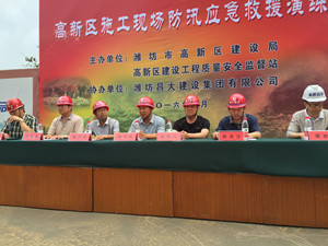 2016年6月15日上午,集团公司协同高新区建设局在集团正在开发建设的泰和东郡工地组织了践行“六月安全月”、强化员工防汛意识为主旨的现场防汛应急救援演练活动。演练课目是在施工现场区域突遇暴雨时,如何在最短时间内充分发挥安全保障机制的作用,快速、高效、有序地实施救援工作,最大限度地使事故损失减小到最低程度,减轻人员伤亡和财产损失,维护员工安全。 本次防汛应急救援演练由高新区建设局、高新区建设工程质量安全监督站主办,集团公司协办。集团公司所有土建公司、安装公司、三个装饰幕墙公司、机施公司、劳务管理处、园林公司等单位分管生产材料的副经理、工程科长、材料科长、工程科安全员、所有施工现场专职安全员参加了本次应急演练活动,高新区的建设单位、建筑施工总承包单位、监理单位派员参加了本次演练活动。 本次演练,检验了应急协调、后勤保障、紧急疏散诸多方面的协调配合的工作机制和处理突发事件的应急能力。