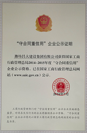 | 集团获国家级“守合同重信用企业”公示资格 根据市场发展部提供的消息,近日,集团公司获得国家级“守合同重信用企业”公示资格,公示资格到2018年7月份有效。 国家级“守合同重信用”企业公示,是由国务院直属机构国家工商行政管理总局组织的企业合同信用考核评价活动,考核评价体系包括企业合同签约和履行情况、企业信用管理情况、知识产权认证等品牌经营建设情况、企业经济效益、公益捐赠等企业社会责任情况等。申报公示流程由企业申报,市级工商部门内部科室联合审核,并函询劳动、税务、环保、安监、质量、金融、审判等部门和机关后,经过对各相关指标按照权重进行计算自动生成考核分数,并由省级工商行政管理部门从申报企业考核分数中由高到低,择优推荐,最终由国家总局审批公布。 全国“守合同重信用企业”公示活动,每两年组织一次,公示资格实行动态管理,据悉,本次公示活动的考评依据是公示企业2014-2015年度企业数据。 集团公司获得本次公示资格,对进一步提升集团公司社会信誉,积极参与工程投标竞标将起到积极的作用。