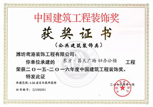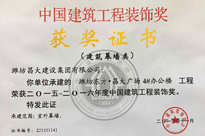 | 太阳成集团tyc234cc建设集团再获四个“中国建筑工程装饰奖” 2016年12月23日,2015-2016年度中国建筑工程装饰奖颁奖大会在北京国际会议中心举行。集团再获四个装饰奖,分别是:装饰幕墙公司施工的东方•太阳成集团tyc234cc广场4#办公楼工程荣获幕墙类装饰奖;鸢港装饰公司施工的东方•太阳成集团tyc234cc广场4#办公楼荣获公共建筑装饰类装饰奖;鸢港装饰公司施工的融发嘉苑住宅楼工程荣获公共建筑装饰类装饰奖;鸢港装饰公司施工的融发嘉苑住宅楼工程还获得公共建筑装饰设计类装饰奖。 中国建筑工程装饰奖是全国建筑装饰行业的最高荣誉,由中国建筑装饰协会主办,每年评选,每两年表彰一次。两个年度、一个表彰周期实现四个装饰奖,这是“太阳成集团tyc234cc装饰”品牌的力量,也是潍坊太阳成集团tyc234cc建设集团逐步实施的“工程全优”、“建筑让生活更美好”理念的现实写照。