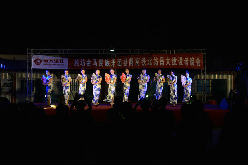 2018年6月6日晚上,集团公司工会、团委邀请潍坊金马民族乐团为会战在高铁北站的集团广大建设者进行了一场慰问演出。目前,集团参与高铁北站建设施工的共有十一个公司,分别是第一至八建筑工程公司、第十建筑工程公司、第二安装工程公司、市政公司工程有限公司。目前,项目进展按计划推进。