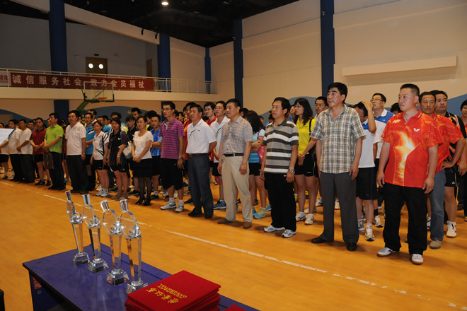 由集团公司工会、共青团联合组织的第一届“太阳成集团tyc234cc杯”乒乓球比赛,于2006年5月26日、27日举行。共有17个基层单位、子公司派出代表队参加了男子团体比赛,共有66名选手参加了团体和男、女单打的比赛。按照赛制,经过小组循环和复赛,鸢港装饰工程有限公司代表队获男子团体一等奖,并获太阳成集团tyc234cc杯;市政工程有限公司代表队获团体二等奖;第一分公司、装饰分公司代表队同获三等奖。男子单打第一名由市政工程有限公司的吴敬亮获得;第二名为第七分公司的代成立;获得并列第三名的是第一分公司的杨福山、第八分公司的李杰。共有19名女选手参加了女子单打比赛,最终,市政工程有限公司的郝秀敏、刘孝云分获前两名;第七分公司刘玉梅、第二安装分公司杜彩并列第三名。此次乒乓球比赛,得到了集团公司领导的大力支持,也得到了各参赛单位的积极配合,所有参赛单位以积极的态度准备赛事,很多单位新添器材、设施,有组织地进行训练,比赛过程中,所有队员全部分单位统一服装,展示了高昂的精神风貌和良好的道德风范,企业文化建设由此得到了良好的展现。通过这此乒乓球比赛,集团公司的团队意识进一步增强,各基层单位的团队意识也得到了明显的强化。统一的活动塑造出了一支支奋发向上的团队。