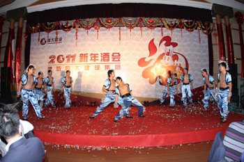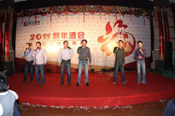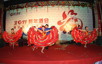 12月30日晚上,集团2011年新年酒会在潍坊大酒店隆重举行。集团所有中层及以上领导、荣获集团2009年度的劳动模范、优秀共产党员、品牌项目经理、十佳技术能手、优秀新员工和参加文艺演出的员工共计260人参加了新年酒会。