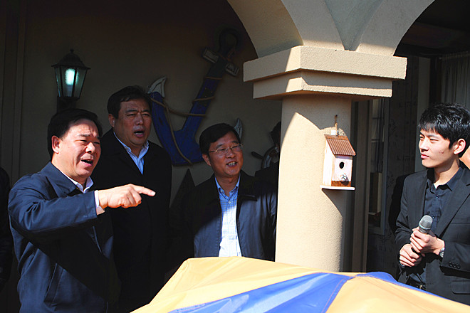 2012年10月18日上午,潍坊市委副书记、市长刘曙光在市政协副主席、市经信委主任李传恒的陪同下,率领市发改委、市财政局、市规划局、市旅游局等有关部门负责人到昌乐参观调研卡纳圣菲项目。昌乐县委书记、县人大常委会主任张新强,县委副书记、县长高立波陪同调研。集团董事长徐鹏强陪同刘曙光参观调研并就项目开发情况作了汇报。