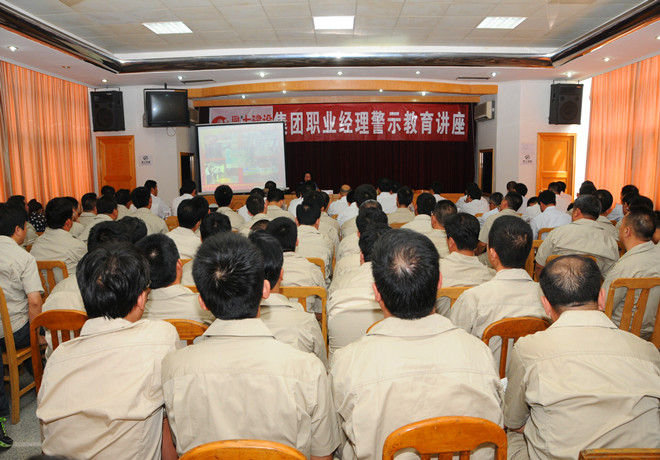 为加强对职业经理的警示教育,培育有理想、有专业、有道德、有纪律的职业经理队伍,全面打造企业核心竞争力,根据党委书记、董事长徐鹏强的提议,集团公司党委于2013年6月26、27日组织了职业经理警示教育专题活动。集团公司高管层领导徐鹏强、朱九洲、滕忠斌、李坤明、姜建鲁、穆乃杰、张学智、闫鹏、刘雁冰,集团公司所属分、子公司经理,总部部室负责人,各分、子公司项目经理共165人参加了上述活动。