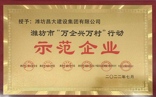 2022年8月10日,潍坊市“万企兴万村”行动现场推进会议召开,会上通报表彰了125家“万企兴万村”示范企业(合作社),集团公司荣获该项荣誉。