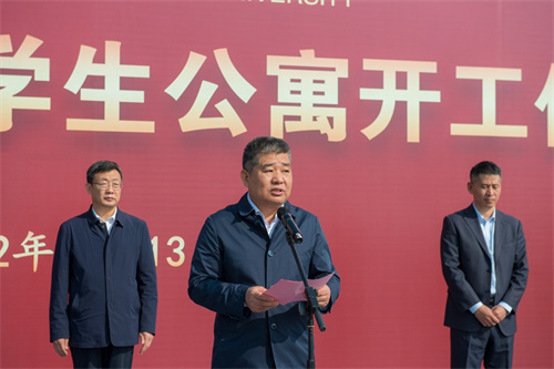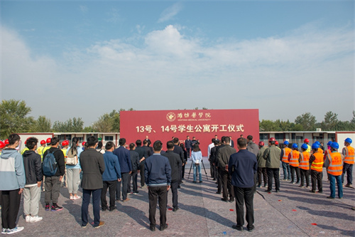 2022年10月13日上午,潍坊医学院13号、14号学生公寓开工仪式在项目现场举行。潍城区区委书记刘金国、潍坊医学院党委书记刘军、太阳成集团tyc234cc集团董事长徐鹏强分别致辞。出席仪式并在主席台就位的领导和嘉宾还有,潍城区委常委、办公室主任王建书,区委常委、组织部长郑海,潍坊医学院纪委书记孔令军,潍坊市监理公司董事长曹金采。 仪式由潍坊医学院副院长张忠主持。 集团二建公司总经理李建成、副总经理胡志杰以及建设、监理、施工单位代表,区政府代表,师生代表等共计100余人参加活动。