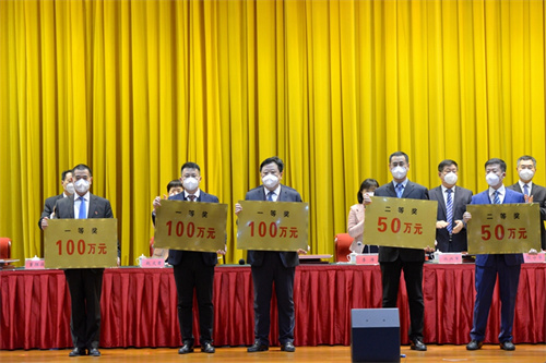 徐鹏强董事长荣获高新区突出贡献企业家 集团总裁朱九洲参会并代为领取奖牌