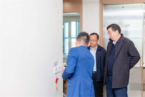 2023年3月25日上午,山东省住建厅厅长王玉志到集团中颐龙湖康养小镇项目参观调研,安丘市委书记贾勤清,市住建局党组书记、局长钟光文、副局长戴玉霞,集团董事长徐鹏强陪同调研。王玉志厅长依次参观了小镇服务中心、颐园中式合院园区与样板间、小镇颐乐康养中心。听取了小镇总体规划布局汇报,对中式合院的建筑文化、小镇宜人的自然环境以及康养配套运营方面的精心考量与服务经验给予了高度评价。