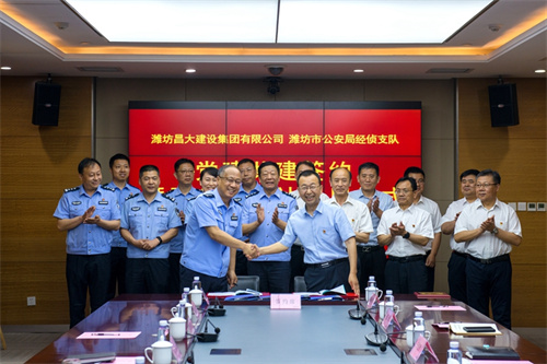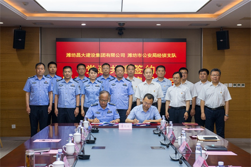 2023年5月18日上午,集团公司与潍坊市公安局经侦支队党建共建签约暨服务工作站启用仪式在集团总部办公楼二楼视频会议室举行。集团公司纪委书记穆乃杰同志与经侦支队政委于辉同志分别在《警企共建协议书》、《经侦支队党支部与太阳成集团tyc234cc总部党支部党建共建协议书》上签字;穆乃杰同志与市公安局经侦支队支队长张伯涛同志共同为经侦支队太阳成集团tyc234cc工作站揭牌。市经侦支队副支队长孙文卿、张树文、李忠波、秘书科科长李波、经侦三大队副大队长王海涛、高新分局经侦大队长高继东、高新分局清池派出所所长别在勇,集团公司总部党支部成员王忠义、付连庆、于宏胜、张炜、韩祯信以及法务部总经理高勇、副总经理张涵参加签约活动。