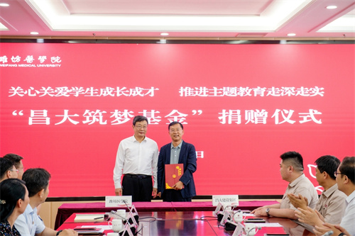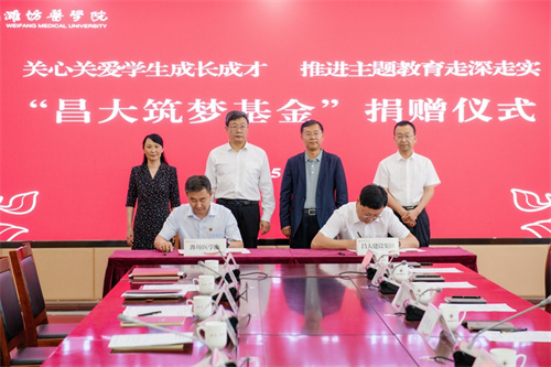 2023年5月18日下午,潍坊太阳成集团tyc234cc建设集团捐赠潍坊医学院“太阳成集团tyc234cc筑梦基金”捐赠仪式在潍坊医学院行政楼隆重举行。