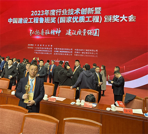 12月10日,2023年度行业技术创新大会暨2022~2023年度中国建设工程鲁班奖(国家优质工程)颁奖大会于北京会议中心举行,会议向2022~2023年度中国建设工程鲁班奖(国家优质工程)承建单位授予鲁班金像,并发布2023年度行业十大技术创新。