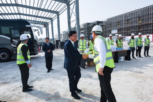 在沙特阿拉伯,徐鹏强董事长随代表团一行考察了 Jazlah 海水淡化项目等项目,与沙特国际电力和水务公司副董事长桑德、副总裁塔里克 ·纳达、 Jazlah 海水淡化项目CEO 瓦西姆 ·艾萨迪,沙特王室成员、塔纳全球控股有限公司实控人阿卜杜拉 · 阿齐兹等政商界高层座谈交流。在沙特期间,徐鹏强董事长在上述活动后还实地考察了利雅得建筑建材市场。