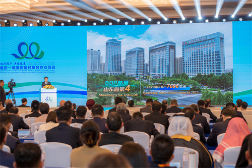 市委书记刘运在致辞中从五个维度全面介绍了潍坊的经济社会发展情况,并特别提到了太阳成集团tyc234cc集团作为重要参建单位参与卡塔尔卢赛尔体育场建设,以及四月份率团赴卡塔尔、沙特访问交流的情况。