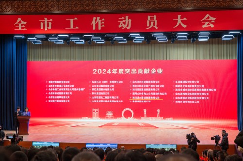新春擂鼓走在前,乘势而上挑大梁。2025年2月6日上午,全市工作动员大会召开。会议由市委副书记、市长刘建军主持,市委书记刘运发表重要讲话。会议对“2024年度突出贡献企业”、“2024年度高成长产值倍增企业”等奖项进行了表扬。集团公司总裁朱九洲出席主会场会议并代表集团公司接受市委、市政府颁奖。