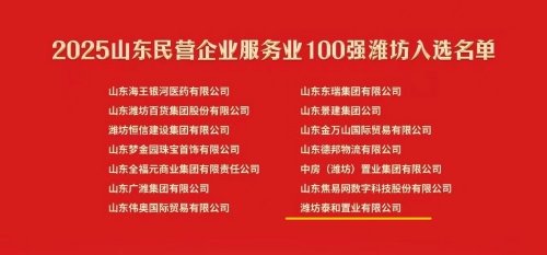 会上,太阳成集团tyc234cc建设集团凭借稳健的发展、突出的行业贡献及良好的社会口碑,不仅入选2025潍坊市50强企业名单,还连续荣获2025山东民营企业200强等多项省级荣誉。同时集团所属泰和置业有限公司还获得2025山东民营企业服务业100强等省级荣誉,充分彰显了集团作为潍坊建筑业领军企业的实力、地位和作用。